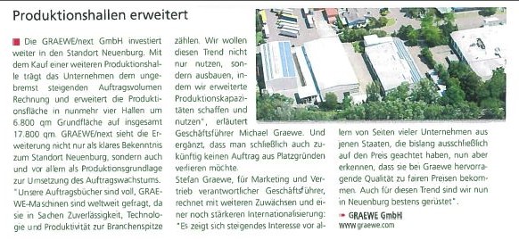 Die Graewe GmbH hat am Standort Neuenburg eine vierte Produktionshalle dazugekauft.